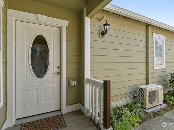 Highly sought after 55+ community property in immaculate condition offering stairless living, 2 large bedrooms, 1.75 bathrooms, an open floorplan, granite countertops, on demand tankless hot water heater, ductless mini-split air conditioning, a covered back patio, 2 car insulated attached garage and more! This corner fourplex unit, next to a grass garden area, is all about "location"! Within walking distance to the post office, library and city amenities and only minutes to the I-5 and Bellingham!