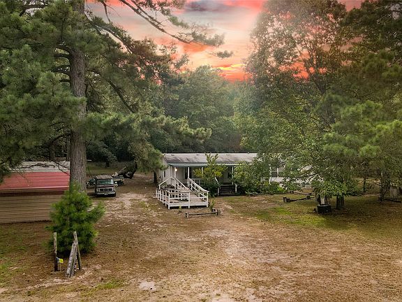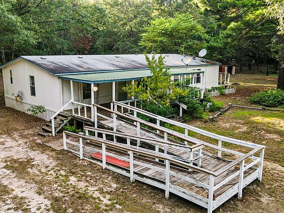 Here is your chance to escape to the peace and quiet with this spacious Doublewide with hardie plank siding sitting on 10 beautiful acres of countryside. Whether you're looking for a private homestead, hobby farm, or a weekend getaway, this property offers a unique opportunity to personalize and transform the home, bringing endless possibilities and potential with the perfect blend of comfort, space, and rural charm. The home features a large living area with wood burning fireplace, a well-equipped kitchen with island and walk-in pantry, full size utility room, split bedroom and plenty of storage and natural light throughout the home. There are generously sized bedrooms and the primary bedroom has a huge walk-in closet, and private en-suite bath with dual sink vanity and another makeup vanity. Step outside and enjoy the serene landscape with mature trees and abundant wildlife. Ten acres fenced and crossed fenced with a total of seven 12 ft gates throughout the property, four storage buildings - one with electricity, a window unit, carpet, shelving, and a back porch. There is also a lean-to for livestock, a chicken coop, covered front deck and a triple carport so there's ample space for gardening, animals, RV's, equipment, or plenty of room to add a shop or an additional residence. With easy access via a well-maintained FM road, you are close to all the amenities in town but with the flexibility to live your dream in the peaceful country with no restrictions. You are also within close driving distance of multiple lakes in the area so bring your boat and go fishing whenever you want to. Bonus: there is also a Timber Exemption already in place so the property taxes are low! Seller will consider concessions for flooring and other cosmetic upgrades with an acceptable offer. Additional 10 acres with spring fed pond next door may also be negotiated but must buy both properties together. Come see it for yourself—book your private tour today and imagine the possibilities!