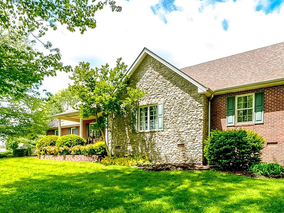 Mature trees, and abundant natural landscaping combine for a tranquil setting for this beautiful home. The full brick and rock home consists of 3 bedrooms (the bonus room can be bedroom #4), 2 full baths, large owners suite with soaking tub, dining room and 1st floor laundry room. The expansive great room, with built in fireplace and cabinetry, is open to the eat-in kitchen and opens onto a beautiful covered brick patio and open deck area, perfect for entertaining and lazy evenings by the fire. The home was built with entertaining and family living in mind....call today to schedule a showing.