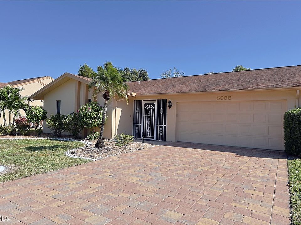 DON'T MISS this Showstopper! 3 BR / 3 FULL BATHS / 2 CAR GARAGE 55+ VILLA in Highly Desired Whiskey Creek! With 1900 SF of Living Area, this home feels like single family living. The Primary and Second Bedrooms have their own bathrooms while the 3rd Full Bathroom is perfect for guests. The Flexible Third bedroom with Murphy Bed could also serve as an extra living room, bonus room or large den. Entire Home has been TOTALLY REMODELED & UPDATED. Real HICKORY HARDWOOD Flooring as well as PORCELAIN TILE! Well-appointed ISLAND KITCHEN with GRANITE COUNTERS ~ SS APPLIANCES (including Built-in Convection Microwave and Oven new in 2024 and French Door Refrigerator) ~ CHERRY WOOD CABINETRY and Pantry with SOFT CLOSE DRAWERS & PULL OUT SHELVES! PLUS, the kitchen Island has INDUCTION Cooktop and Canopy Range Hood. Feel safe and secure knowing EVERY WINDOW (incl GARAGE DOOR) are MIAMI DADE RATED (excluding front door). Hunter Douglas Blinds and Room darkening Shades on most windows. ~ NEW A/C 2024 ~ High Ceilings and CROWN MOULDING throughout. You're sure to attract guests with MULTIPLE LIVING & ENTERTAINING AREAS including a Paver-Brick back PATIO! Inside LAUNDRY ROOM with utility sink and cabinetry. Beverage Bar w New 2024 Dual-Zone Wine/Bev Fridge. Epoxy Flooring in Garage with Custom Cabinets. Brand new carpeting in Primary BR. Beautiful Paver Driveway and Concrete Curbing. Must see this home! Condo Fees include Lawn Maintenance, Roofs, Exterior Insurance, HEATED POOL AND CABLE! Bring your pet under 20#. One Annual Rental allowed. NOT in flood zone. Location is everything and you have that here in the Whiskey Creek neighborhood, so close to restaurants, shopping, historic downtown Ft. Myers and Cape Coral. Whiskey Creek is home to a public golf course with restaurant! Golf and social memberships are additionally available. Golf cart friendly, bike and jog paths and friendly neighbors. Don’t miss out on this one!