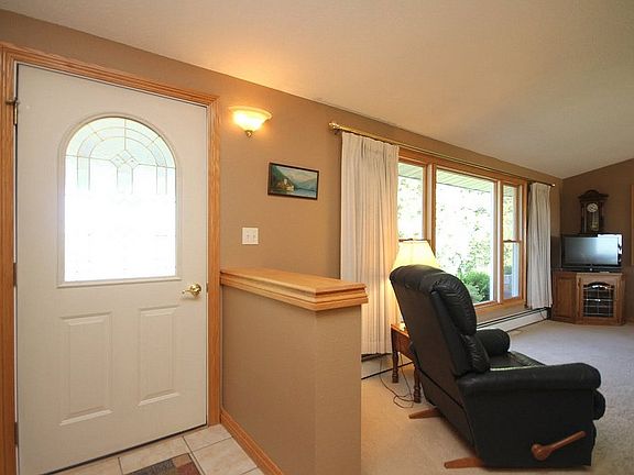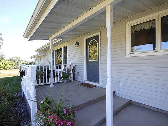 Peaceful, relaxing, inviting are just a few of the words that describe the backdrop for this lovely home built on five plus beautiful acres in southwest Wisconsin between Dodgeville and Spring Green. Just behind Governor Dodge State Park and close to American Players Theater and The Springs Golf course--this house is just a hop, skip and jump away from all the fun places to play and only 10 minutes to both Dodgeville and Spring Green for working or shopping or whatever else you might like to do and about 30 minutes to the westside of Madison (depending how you drive). Now that we have the location, location, location part out of the way, let's talk about the house....and boy is there a lot to talk about..Well outside, there are a lot of perennials. You know, those nice plants that come up on their own that you don't have to plant every year. I like those. Especially the ones that have pretty flowers and nice greenery. There is also a lot of room so that if you wanted to have a horse or two you could or some people like to grow their own fruit and vegetables so as to not have to worry about gmos or pesticides, etc. or just because they like to. There are some apple trees already growing here. There is also a really nice and large deck. It is 18 x 30 and faces east with a fabulous view of Blue Mounds. The current owner said one of her favorite things about this home is having coffee in the morning and the view of the Mounds especially in the early spring when it is still kind of chilly outside but the sun makes it warm enough to sit outside on the deck. It is a terrific deck for entertaining in the evening too and stargazing and can accommodate a surprisingly large number of people!The house is an unassuming ranch style with a covered front porch and an oversized two car garage that also has a workbench and additional storage space. The front of the home is adorned with quartzite stone from Baraboo. Inside, the home has had such attention to detail as you will note as you peruse the pictures above, but really the best way to see this home is to scroll down and view the full motion virtual tour link that will be available below or WAY BETTER YET COME SEE IT IN PERSON!!You enter into the formal living room. There is a large coat closet on your right and straight ahead is the kitchen and a powder room and to the right a hall for the bedroom wing and a full bath. On the main floor there are two bedrooms with very large closets, a full bath, laundry, master bedroom with walk-in closet and built-in desk area. The entire home has been recently updated with fresh paint and an attractive color palette.There is a sunken two-story great room that has the feel of a "Colorado ski-lodge". There is almost no other way to describe it. It has soaring vaulted ceilings accentuated with wooden beams and a wood burning fireplace made from the same Baraboo quartzite stone that regales the front of the home. It has lovely purple tones. It is absolutely stunning during the holidays with the decorations that I have seen there. There is a built-in wood box that you can stock from the outside so that you do not have to carry wood in throughout the house which is very convenient. They really have thought of everything. There is another small deck from a french door from this room too. The lower level has been completely and professionally finished to include a family/media space, an exercise space, freezer/refrigerator space, a legal fourth bedroom, full bath, and two storage rooms. The lower levels also walks out to the backyard.So while the home is very unassuming from the front, it has a very different and more open look from the back. From the six-panel solid core doors to the tile floors to the updated kitchen to the "Colorado ski-lodge" sunken great room to the finished lower level to the great country views to the fabulous "entertaining" deck, this is a home that you have to come and see to get the feel for how you might ma