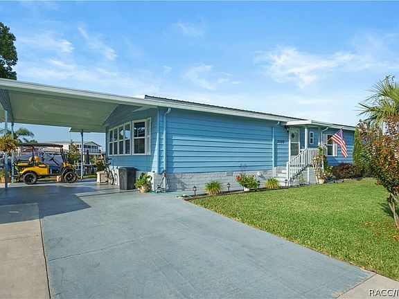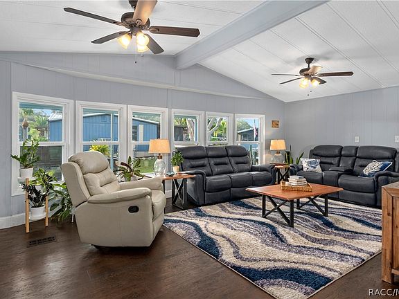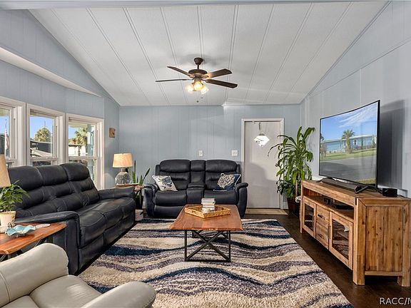 Beautifully updated waterfront mobile home in highly desired Riverview Estates. This two bedroom two bathroom home sits on a deepwater canal and minutes to the Homosassa River. Amazing updated kitchen with granite counters and stainless steel appliances. Large living room with built ins and a wine bar for entertaining. No carpet, high traffic waterproof vinyl plank flooring throughout. Drink your morning coffee on this comfortable screen porch overlooking the canal. There is an atttached storage shed and a bar b que area. Roomy 2 car carport and the boat lift installed new in 2018. New metal roof in 2018 on the mobile and new roof on the screened porch in 2018 as well. New HVAC in 2020. This home is so welcoming and move in ready. Drive your golfcart to the area restaurants and more. Love where you live!