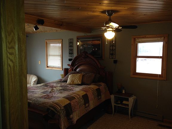 Beautiful property with a lot of potential. This 4 bed, 1 bath home sits on 4 Acres with 400 ft. of lake shore, 2 garages, 1 garage has unfinished living quarters-perfect for a guest house! Home was being remodeled, sold before it was finished. With a little TLC, this home with beautiful views overlooking a private Island on Fools Lake. This property is being sold ''AS IS''