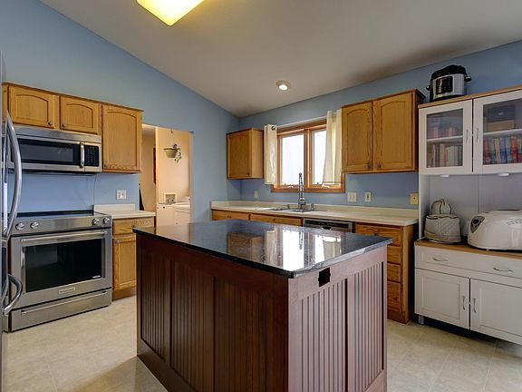 This home sits on just over 3 acres with a beautiful country setting with multiple fruit tree's.  Many updates including new A/C in 2023, new well pump in 2022, new flooring in bedrooms in 2020 along with new roof and siding in 2020, freshly painted living room. Open kitchen with Stainless steel appliances and large center island with granite. 3 bedrooms on main level along with main floor laundry. The basement has been started just waiting for you to finish to your liking and add more finished space. Plenty of room to store all your toys in the 30x48 pole barn. Easy access to 35 for commuting. Hooved Animals are not allowed. Move in and enjoy!