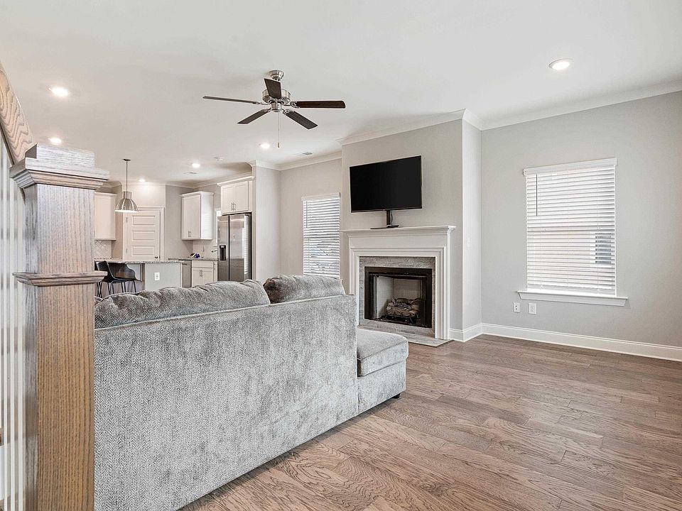 **SELLERS WILL GIVE $10,000 IN BUYER CONCESSIONS WITH A FULL PRICE OFFER!!** Welcome to this beautifully crafted home in Sumter Landing, featuring 4 bedrooms, 2.5 baths and a spacious open-concept main level; this home is perfect for modern living. The main floor includes a bright living room with a cozy gas fireplace, dining area, and a stylish kitchen equipped with granite countertops and hardwood laminate flooring. The main-level master suite is complete with an en-suite bath, and you'll find a convenient laundry room and half bath here, too. Upstairs, three additional bedrooms, a full bathroom, and a versatile loft/den provide ample space for family or guests. Outside, enjoy the privacy of a fenced backyard and entertain on the patio. This home also offers a two-car garage for extra storage and convenience. Experience modern comfort with classic design in a friendly neighborhood setting!