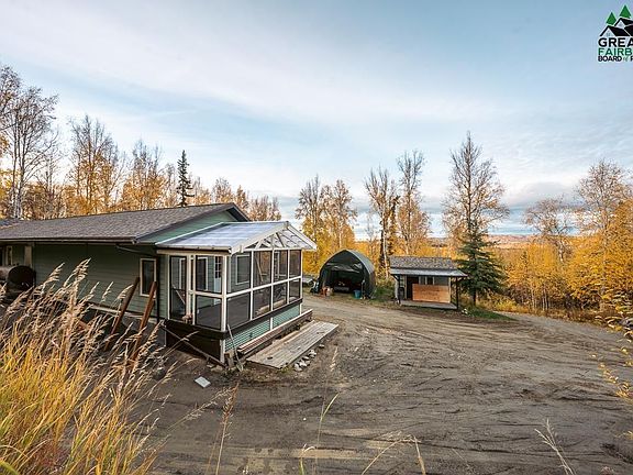 Located on the back side of Birch Hill just minutes from town, with direct access to the desirable Birch Hill Ski Trails. Adorable, and private two bedroom, one bath home is above the ice fog with beautiful territorial views. Bonus trails right out your back door for snowmachines, ATVS, or dog mushing! Freshly remodeled with energy upgrades, to include- new electrical, new insulation underneath the floors, double wall construction, and fresh paint in 2022 and a new water heater in 2021. This home is turn key and ready for a new owner! The glass front Blaze King wood stove is super cozy for Alaskan winters. The master bedroom is spacious, with double walk-in closets, east facing sun porch and a screened in porch. Kitchen upgraded with granite composite sink, gas stove and new LVP floors. Outside features a work shed with electric, firewood storage shed, two shelter logic poly garages, and a level gravel pad for future two car garage.