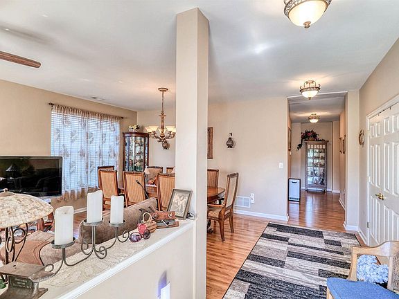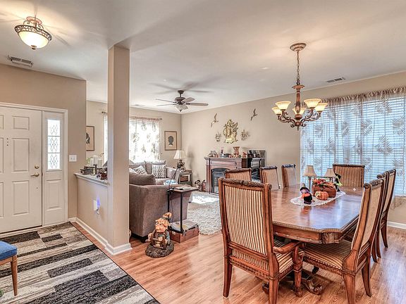 Prime Location & One-of-a-Kind Charm – A True Gem in Chatham Village! Welcome to this beautifully maintained Larch model—a stunning 2-bedroom, 2-bathroom home located in the highly desirable Chatham Village. Just steps from the Four Seasons Clubhouse, this property offers the perfect blend of comfort, efficiency, and year-round enjoyment in a prime location that's hard to beat. From the moment you arrive, the home's elegant brick façade makes a lasting impression. Step inside to find gleaming hardwood (parquet) floors flowing seamlessly through the living and dining areas, all tastefully accented in neutral tones that provide a warm, inviting atmosphere. At the heart of the home is a show-stopping chef’s kitchen featuring custom concrete countertops inlaid with decorative glass, a new stainless and glass tile backsplash, white cabinetry, a pantry, stainless steel appliances, and updated lighting throughout—perfect for both cooking and entertaining. The spacious 18 x 20 family room flows effortlessly from the kitchen and opens to a beautifully landscaped backyard complete with a patio and built-in gas hookup for grilling. Enjoy a serene, buffered lot that provides added privacy and gorgeous seasonal flowers planted with care for year-round beauty. The primary suite offers comfort and tranquility with abundant natural light, a walk-in closet, and a luxurious ensuite featuring Greek marble countertops, an elevated vanity and toilet, and classic window shutters—blending functionality with sophisticated design. A large guest bedroom and full guest bathroom with a tub/shower combo, elevated toilet, and marble-topped vanity provide a comfortable retreat for visitors. The home also boasts a generous laundry room with utility sink and cabinetry, plus a spacious 2-car garage. Additional highlights: New HVAC and hot water heater (2024), Carpet only 4 years old, Abundant storage and closet space throughout, Enjoy all the amenities of the nearby Four Seasons Clubhouse, including indoor and outdoor heated pools, a gym, billiards room, library, and more! Don’t miss your chance to own this beautifully upgraded home in a premier location. Surety Title preferred.