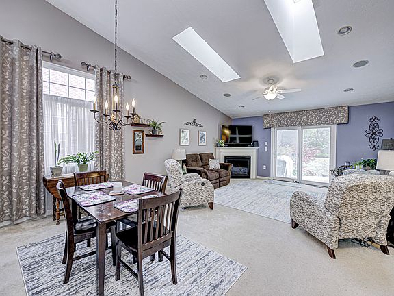 Welcome to 569 Dylan Dr. This patio home is spacious with 2 bedrooms and 2 baths on the main level. The great room has vaulted ceilings with skylights and a gas-log fireplace. The eat-in kitchen has lots of conveniences including a large pantry and separate closet along with the laundry room off the kitchen area. The surprise is there is a full partially finished basement with another full bath and family room with a built-in bar area, plus a huge storage area that houses the furnace, water heater, and a double utility sink which could be perfect for the crafter/painter or use it as a pet washing station. Enjoy the patio and beautiful landscaping while sitting in the inviting hot tub that is only 2 years old. This beautiful home features large windows, and skylights that let in plenty of natural light. The patio doors are newer and have built-in blinds. Most of the lighting has been updated. The HVAC is new in 2024 with a 10 -year warranty. Don't miss the opportunity to own this beautiful home located close to amenities.
