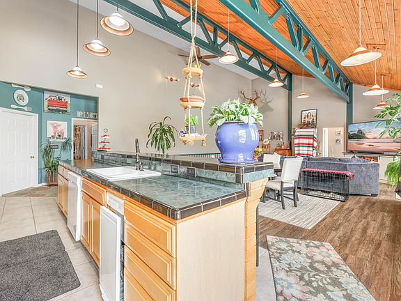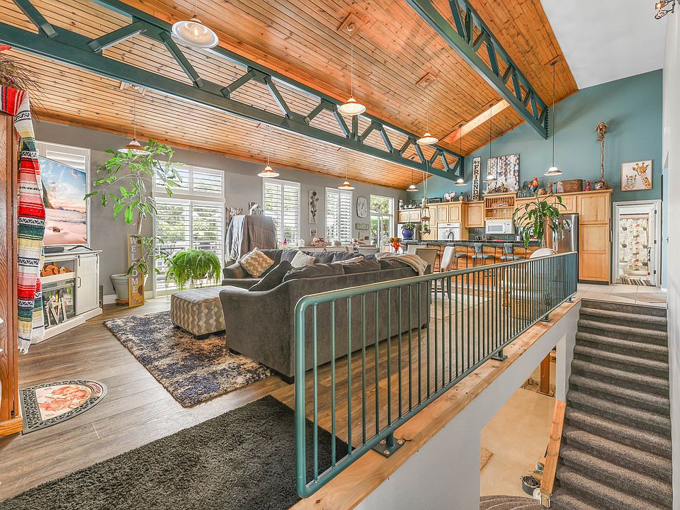 WOW! This is not your typical subdivision home. This home is built with iron beams like a commercial building! This is a 5 bedroom, 5 bathroom, open concept home that has 5 sliders going out to the deck/patio that spans the entire length of the home which is an impressive 89 ft. You also have your own private wooded area on this .60 lot. If you are looking for privacy in the city that is close to airports and entertainment, this is your place! This wonderful home is perfect for entertaining. with it' s double refrigerators, double sinks, double disposals, and double ovens in the kitchen and a double staircase that leads to the walkout basement. This unique home has 5470 square feet, 10 ft ceilings upstairs and down and vaulted great room/kitchen area with exposed metal beams, what a stunning room! The primary suite is located on one end of the home with all the other bedrooms on opposite end. One of the bedrooms has its own private bathroom and access to the deck. The roof was replaced in 2024 and the furnace is a large capacity with 5 ton condenser that was replaced about 9 years ago. This home has a 4 car garage with 10 and 12 ft garage doors. The RV pad is 88 feet long. When you are enjoying those warm summer evenings on your deck, you can take in the breathtaking views of the mountains!