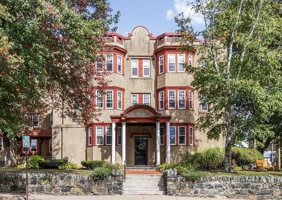 Discover this exquisite condominium located near the heart of Melrose, showcasing remarkable period details. From the grand foyer to crown moldings, coffered ceilings, and an ornamental fireplace, this space exudes elegance. Large bay windows and gleaming hardwood floors throughout create a warm and inviting atmosphere perfect for entertaining. The well-appointed kitchen features stainless steel appliances, beautiful granite countertops, and ample cabinet space. This front-facing unit features three spacious bedrooms and a full bathroom, offering ample space for relaxation and comfort. Enjoy the fabulous three-season lounging area, which can also serve as a cozy office space. Additional amenities include a storage unit, a deeded garage space, on-site laundry, and a brand-new roof for the building. Situated in an exceptional location, this condo is just a short walk to the Melrose Highlands commuter rail station, bus station, and all the amenities Melrose has to offer. Come see it today