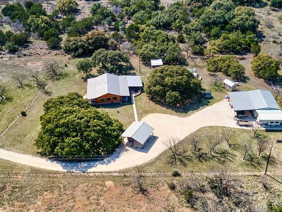 Nestled beneath huge oaks in a park-like setting is this lovingly maintained 2BD/2BA log home. The dining/living/kitchen are open concept with vaulted ceilings. The kitchen features plentiful cabinetry, granite tile counters, and black appliances. Pine wood floors are throughout the home. Large, covered decks grace both the front and back of the home and an inviting veranda with gas fireplace flows off the back deck making entertaining large groups easy. A comfortable 1BD/1BA cottage is perfect for extra guests. A 3-bay, 30'x40' shop/barn is any man's dream and there's also a cute "she-shed" for the ladies! The Deer Creek community is 5 miles south of Leakey off RR1120 and has a gated entrance. It is peaceful, quiet, and full of birds & wildlife for your viewing pleasure. Sensible restrictions protect your investment.