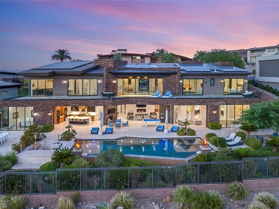 Showcasing over $1M in renovations, 569 Lairmont Place is a reimagined luxury estate in MacDonald Highlands, offering ultimate privacy and security. Boasting panoramic golf/Strip views, this home sits on an exclusive double-gated street and quiet cul-de-sac. The open-concept design with nano doors lives like a single story, blending seamless indoor/outdoor living. The kitchen features Carrera marble counters/walls, Italian range, brass hood, and "True" brand appliances. An Italian limestone fireplace elevates the great room. The primary suite offers a seating area, spa-inspired silver vein travertine bath with dual closets/W/Cs, soaking tub, and walk-through shower. Perfect for entertaining with 2 full bars, a 12-seat theatre, and spacious main level walk-out resort-style backyard, with the XXL pool built significantly larger than new water regulations allow. Separate gym/sauna, casita, full automation, and solar complete the masterpiece. Video:youtu.be/l7UluneaMXo?si=u13EBc2o2pzIi0-N