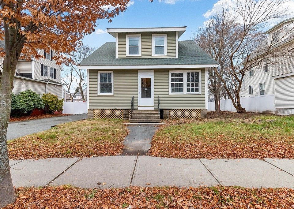 Renovated Cape in desirable Cliftondale neighborhood of Saugus, MA. This home offers a convenient location with easy access to Route 1, making your commute to Boston a breeze. The kitchen is a highlight, showcasing white cabinets and stainless steel appliances. Open concept dining and living room, ready for a cozy winter with a wood burning fireplace. Three generous bedrooms, each featuring oversized closets, this residence provides ample space for comfort and storage. New replacement windows bring in plenty of natural light. Newly refinished hardwood floors add a touch of elegance to the interior. Fresh paint throughout the home creates a clean and modern atmosphere. The ample-sized driveway ensures plenty of parking with room to turn around. Exterior features easy to maintain vinyl siding, deck and large backyard for all outdoor activities. Modern updates with classic charm in prime location.