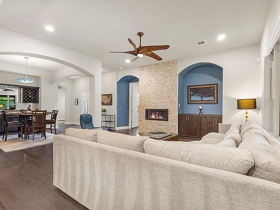 Welcome to 569 Mendocino Lane where custom design meets refined comfort in the coveted Belterra community. Perfectly situated on a spacious .22 acre corner lot with only one neighbor, this beautifully upgraded single story, 4 bedroom home offers the ideal blend of elegance, functionality, and effortless entertaining. The home is positioned conveniently between Austin and Dripping Springs. Thoughtfully designed with a sanctuary style lifestyle in mind, the home features an open concept layout with high end finishes, a convenient Jack and Jill bedroom layout, and a custom home office perfect for remote work or quiet retreat. The air conditioned and heated all season room with automated shades adds year round flexibility with a 662 sqft built up patio with a Green space 34 X 19 creating a beautifully landscaped oasis right in your backyard. The backyard is a true landscaped dream, featuring low maintenance hardscaping, a small grassy area with 4 sprinkler heads, a pergola with a custom plexiglass sunshade roof, and a custom built outdoor dining bar, perfect for gatherings that are large or small. Additional highlights include a three car garage, a water softener system, tankless water heater, Sonos sound system indoor and out perfect for music lovers, control tower, smart thermostat, soft close cabinets, pull out drawer, motion sensor lights and modern designer fixtures throughout. Belterra is more than a neighborhood, it's a lifestyle. With access to top rated Dripping Springs ISD schools, 15 mile scenic hike and bike trails, and resort style community amenities, it’s easy to see why residents love calling this vibrant community home. Plus, with Belterra Village just around the corner, you’re never far from upscale dining, shopping, and entertainment. Don’t miss the chance to make this exceptional home your own, schedule a private tour today and experience the best of Hill Country living.