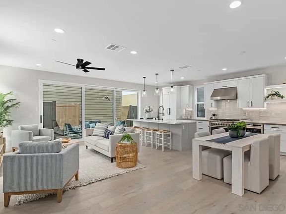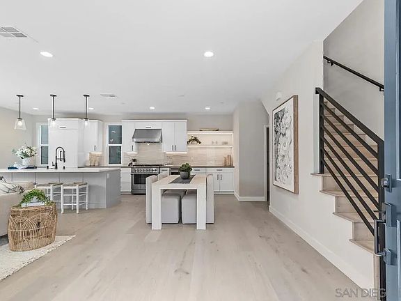 Brand-new and two minutes to the beach and downtown Encinitas welcome to Stonesteps Cove, a charming new enclave west of the 5 in Coastal Encinitas/Leucadia. This modern coastal farmhouse offers 3 bedrooms, 2.5 baths, plus an upstairs Teen Room across 1,803 sq ft. Fully powered by Solar, save on the electricity bill. The entry level opens to an expansive great room anchored by a chef's kitchen with a generous island for seating, flowing naturally to dining and living spaces. Extra-large premium sliders bathe the interior in light and glide open to a secluded outdoor area perfect for morning coffee or sunset dinners. Upstairs you'll find the primary suite, two secondary bedrooms, a full bath, the Teen Room/flex lounge, and a convenient laundry room.