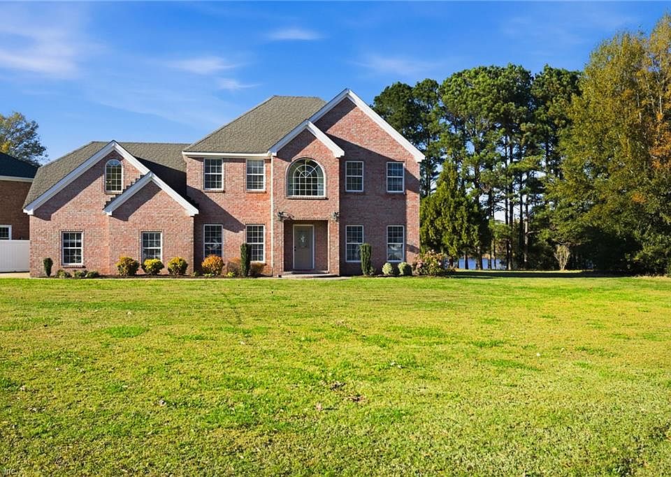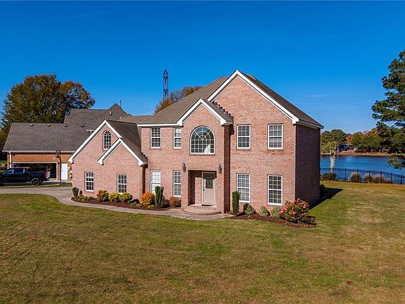 Fantastic ALL BRICK 4 Bdr, 3 Full Bath located directly on the Lake in desirable Carriage House Estates! This beauty has many updates & is truly ready for new owners! Updates include new paint, new carpet, two new A/C units installed in 2025, light fixtures The lovely updated eat-in kitchen boasts new Frigidaire Gas Range, Refrigerator, & Microwave, paint, & backsplash. Unobstructed views of water from eat-in kitchen. Primary Bdr boasts huge WI closet w/window, en-suite bath w/ tub, shower and dual vanities. The walk-up attic provides lots of storage. FROG is large and could double as 4th bedroom, media room/playroom, etc with a full bath at the bottom of the stairs. The real showstoppers are the expansive lake views which can be enjoyed from all back windows, patio or private dock on the Lake. The Lake provides gorgeous views & the land extends on the back right (Est. 335 ft) along the waterfront with a wooded private trail on the property! 1.75 acre lot extends into the water.