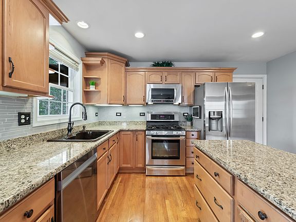 Nestled against sweeping conservation land, this 4/5 bedroom, two story home with a full finished walkout basement captures the best of both worlds-tranquil natural views out back and yet just minutes away from quaint downtown Crystal Lake. Inside, a versatile floor plan adapts effortlessly whether you are entertaining or just for everyday living. The main level offers a two-story foyer, office/den with French doors, dining room and spacious family room with fireplace. At the heart of the home, the kitchen includes stainless appliances, granite countertops and an ideal prep island. Beyond the eating area, is access to a picture-perfect screened porch with additional access to an expansive composite open air deck-both with abundant views, perfect to enjoy your morning coffee or delight in summer BBQ's. Upstairs you will find four bedrooms plus a generously sized bonus room which offers flexibility for a fifth-bedroom, playroom or additional office space. The primary suite offers a tray ceiling, spa inspired bath, and a walk in closet. Need even more space? The full, finished walkout basement delivers. Thoughtfully designed with large daylight windows and direct flagstone patio access, it provides an ideal rec room and game area, in addition to having a rough-in bath for future possibilities and plenty of ample storage space. From the classic curb appeal of its covered front porch to the serenity of conservation land, with a walking path and Woodland Park at your back door, this well-maintained home balances nature, neighborhood and location. Welcome Home!