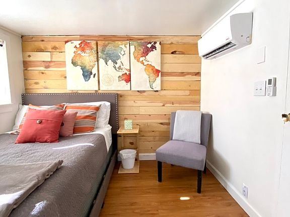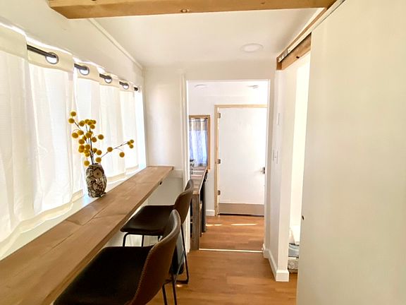 Remodeled studio apartment. Small apartment complex with parking next to apartment. Located in nice, quiet, residential neighborhood. Kitchenette with sink, small fridge, toaster oven and microwave. Smart TV. Full sized bed. Bar top area with nice view of pine trees. Laundry onsite for guests.