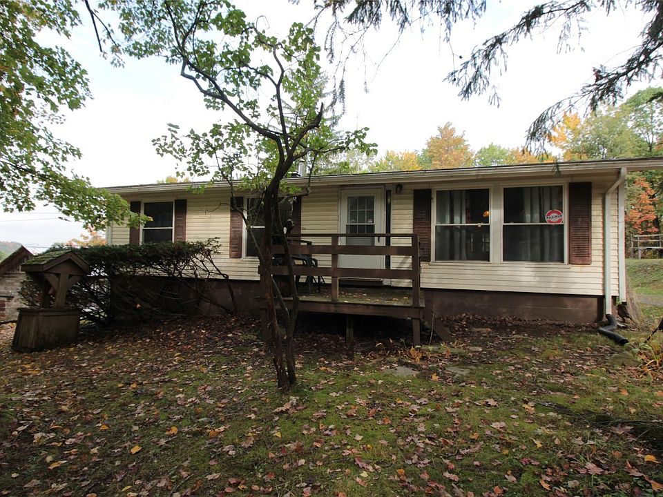 Take a look at 569 Trim Street- this 2-3 bedroom, 1 full bath ranch home sits on appx 1.3 acres with a pond. One level living with a full basement ready for your ideas. Detached, oversized two bay garage and sheds. House sits back from the road and has a circular driveway. Enter into an open concept living space with dining area. Pass through to the applianced kitchen. 2-3 bedrooms and a full bath with shower. Sunroom and back deck. Well & septic. Septic test provided for buyer review. Oil forced hot air furnace with a supplemental wood burning furnace. Washer & Dryer included. Finish the basement for bonus living space. Oversized garage with electric and heat. The pond to watch the fish on a perfect Fall day or maybe take a swim. House is an early modular using engineered trusses, it is not a doublewide. Total taxes are appx $3298-STAR is currently $523. New survey and passing septic report with well flow available for buyer review. Qualified buyers may tour by appointment.