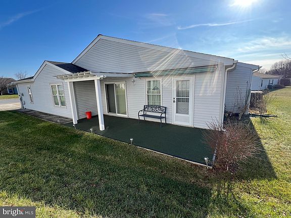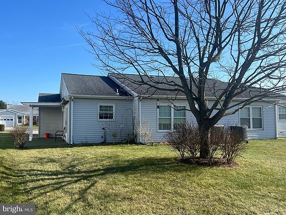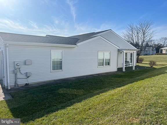 This single-level home, Chesapeake Model, is in a peaceful 55+ community, designed for easy living and comfort. The entryway opens to a spacious, open-concept living and dining area with warm wood floors that flow throughout the home. The kitchen, adjacent to the dining room, offers wood cabinetry with quartz countertops, and opens onto side patio. While relaxing on the side patio, enjoy the open common area space to the rear of home. The bedrooms are comfortable and bright, with ample closet space. Two full baths, one ensuite to the primary bedroom. Easy updates needed, fresh paint and and aesthetics can make this your next home Lawn care included in HOA fee and the community amenities complete the picture, making this home a solid choice.