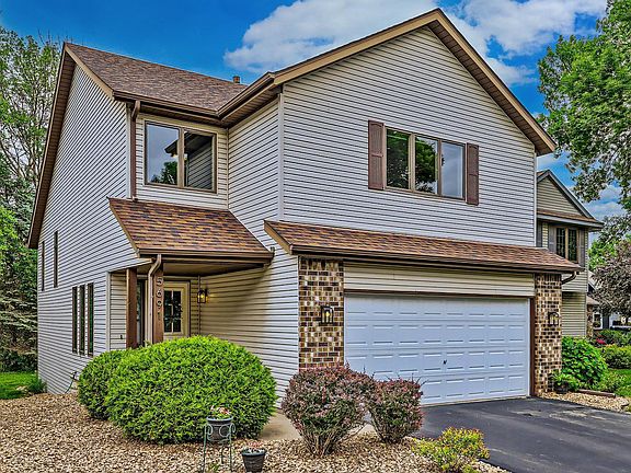Welcome to this meticulously updated and maintained 3-bedroom detached townhome, nestled in the heart of Shoreview, offering stunning tree-top views and a serene pond backdrop. As you step inside, you’ll be greeted by a spacious foyer that opens up to the great room with a vaulted ceiling and hardwood flooring, creating an ideal space for entertaining. The recently renovated kitchen is a chef's dream, featuring a central island, convection gas range, stainless steel appliances, and a stylish dry bar, perfect for casual dining or hosting gatherings. The spacious living room boasts a bank of south-facing windows that flood the space with natural light, complemented by a custom electric fireplace and elegant fluted windows, adding a touch of sophistication. The dining area seamlessly connects to the deck, where you can enjoy private views of nature and observe the abundant wildlife that frequents the area. Retreat to the large primary bedroom, complete with a walk-in closet, and main bathroom featuring double sinks, oversized tub, a beautifully tiled shower, and attractive tile floors. The lower level offers a versatile guest bedroom suite, equipped with a convenient Murphy bed and a built-in closet. This level also features a tiled 3/4 bathroom, cozy corner gas fireplace, perfect for relaxing evenings, and opens up to a patio and backyard, extending your living space outdoors. Find peace of mind with updated large ticket items like a 2024 high efficiency furnace and AC, newer roof and Andersen windows. Experience the charm and beauty of this property firsthand—schedule your showing today!