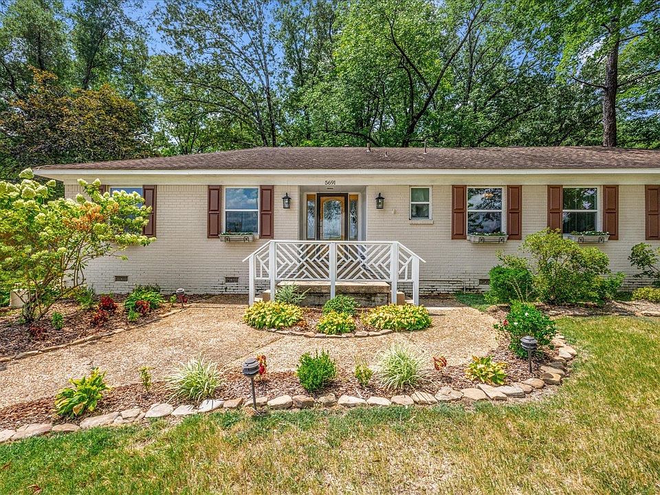Welcome to this charming one-level home that combines comfort and convenience! This delightful property features three bedrooms and two and a half baths, all on a single level. The spacious living room and dining room are perfect for entertaining guests, while the kitchen boasts a cozy breakfast nook. Relax in the family den, complete with a wood-burning fireplace, or unwind in the sunroom, ideal for relaxation or entertaining. The primary bedroom includes a renovated en-suite bath, and another bedroom features a half bath with a stylish sliding barn door. barn door. The home also includes a convenient hallway closet with a washer and dryer. Step outside to enjoy the wooden deck and the professionally landscaped, shady backyard. Additional highlights include a carport with an electric gate and a recently built shed with electricity. This home truly has it all!