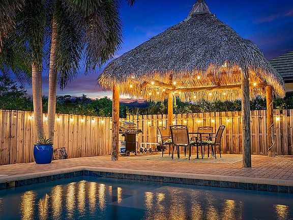 This beautiful Pennock Point home is situated on an incredible corner lot with over 1/3 of an acre. Just steps from the Loxahatchee River on one of Jupiter's most desirable streets! With 4 bedrooms, 3 baths & an open, flowing floorplan, this home is an entertainer's dream. You'll appreciate the arched doorways, French doors, naturally aged hardwood floors throughout & custom fireplace mantel w/ reclaimed wood from the Blue Ridge Mountains. Huge great room, formal dining room & a large kitchen w/ granite counters, SS appliances, an eating bar & island. Spacious primary suite overlooking the pool with an en-suite bath & walk-in closet. Huge driveway w/ plenty of room for a boat/RV. Your backyard oasis awaits w/ a saltwater pool, tiki hut & side yard ideal for a garden or playground. No HOA!