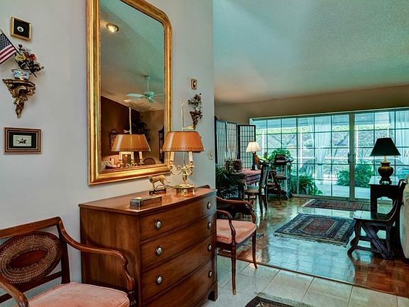 This, surely, is one of Country Lakes most lovely homes. Beautiful curb appeal with meticulously maintained lawns & flowering shrubs & a side garage entry. Pride of ownership shows throughout the entire home. The graceful entryway with tile flooring has lovely views out to the private pool area. There is a separate formal dining room with newer parquet floor & vaulted ceiling where one would be proud to serve any meal. The Living/Great room is huge (31x16) which these owners have artfully divided into two areas with decorative screens. The main area has one whole wall of book shelving, a wonderful wood burning fireplace, parquet floors & is set off with vaulted ceilings. The other area is a cozy sitting area for television viewing. The Kitchen has a large breakfast area at one end with an outside window for great lighting. The master bedroom has sliders going out to a side garden and the pool. The master bath has been remodeled with a large walk in shower with designer tiles & a picture window to the outside that sets this room off. The pool area is a work of art & very much Palm Beach inspired with lovely draperies for a stunning effect & a huge privacy hedge behind the entire pool. For lunch or dinner this would be the place to be. Solar X Film installed (7/11) on all windows & hurricane shutters on the garage & front door. The roof was replaced in (6/06)) A/C new in (3/08) water heater (9/11) master bath remodeled in (3/09) nothing to do but move in. Please see the virtual tour to be amazed.