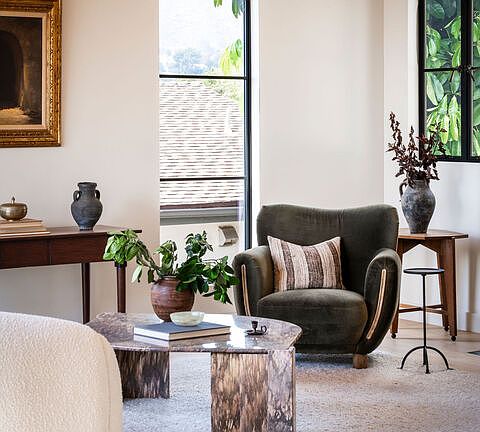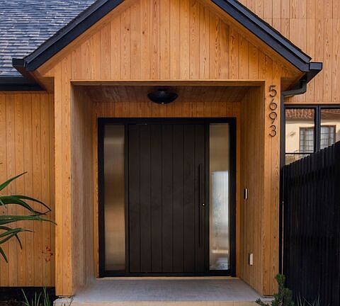 Brand newly renovated in 2025, this stunning 5 bed, 5 bath home in coveted Los Feliz Oaks offers over 3,500 square feet of expertly designed living space with spectacular city views in nearly every room - a true hilltop refuge. The beautifully updated home features high-end, custom finishes throughout, offering luxurious design and ease of living. The ideal floorplan includes a connected 4-car garage and a lower level with three bedrooms, featuring a primary suite with dual closets and a breathtaking primary bathroom, along with a guest suite complete with kitchenette. The home features patios on every floor and expansive lower decking surrounded by mature trees. Past the striking pine-sided facade, the front door opens to the main living space with soaring vaulted ceilings, wide-plank white oak floors, and abundant windows allowing majestic city views and natural light. A striking black zellige tiled fireplace anchors the airy living room, with windowed doors leading to the top balcony showcasing expansive views of downtown LA, Griffith Park, and the ocean. The adjacent dining space features wood-vaulted ceilings centered by a hand-blown glass chandelier. The expansive chef's kitchen offers inset shaker cabinetry with unlacquered brass hardware, Carrara Picasso marble countertops, a walnut-marble wet bar, and premium appliances, including a Bertazzoni 48" range, Thermador refrigerator/freezer, Bosch dishwasher, and pot filler under an angular gold vent hood. The lower level offers a laundry room and three bedrooms: the primary suite, second bedroom, and Junior ADU. The show-stopping primary suite features its own zellige tiled fireplace, French doors to a private balcony, and dual walk-in closets. The ensuite bathroom offers brass-inlaid tile flooring and a Calacatta Viola dual-sink vanity, surrounded by a marble shower with dual rain showerheads, water closet, and freestanding soaking tub next to floor-to-ceiling windows. The Junior ADU provides a fully independent living space with quartzite counters, Thermador and Bosch appliances, custom closets, and a luxe bath with Calacatta Gold marble - ideal for guests or rental income. The fifth bedroom occupies the bottom level with French doors to a sprawling deck and wood-paneled bath. Every system has been upgraded, including copper plumbing, new electrical panels, multi-zone HVAC with Ecobee smart controls, tankless water heaters, and 10-speaker surround sound. The finished garage accommodates four cars with 240V EV charging. Exterior thermally modified pine siding is fire-resistant. Outdoor living features ORCA-tiled walkways, multiple expansive decks with custom steel railings, fresh landscaping with irrigation and lighting, and new concrete staircases connecting every corner of the property. Ideally located minutes from Griffith Observatory, Hollywood Sign, Greek Theatre, and Hollywood Bowl, plus neighborhood favorites like Beachwood Cafe, The Oaks Gourmet Market & Cafe, and La Villita Cantina. A rare offering in Los Feliz Oaks combining architectural history with modern luxury.
