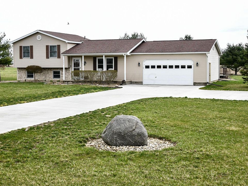 Move In Ready Extra Large 3 Level Split on Over an Acre in the Country!!! This beautiful setting has been spruced up and its ready for you. All new concrete drive with extra parking, nicely stoned landscaped beds, 19'x36' rear deck, 12'x20' barn with double lofts and cov. front porch, newer mechanicals and an updated interior. The great room designed front includes all new lam. flooring, hutch alcove, center island with eating bar and stainless steel appliances. plus a spacious dining area w/extra cabinets. The rear addition hosts a 14.5'x23.5' vaulted family room and the primary suite. 3 spacious guest rooms and 2nd full bath on upper level and 20.5'x21.5' rec room on the lower level. Mechanical/laundry room has crawl space access to deep crawl and has been well insulated.