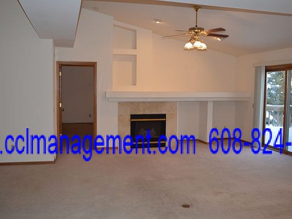 Rent this massive Fitchburg around-the-corner duplex, with each side facing a separate street for privacy. This spacious duplex features tons of living space and large bedrooms. It opens with a grand room featuring vaulted ceilings and a gas fireplace. This leads to the fully equipped kitchen with a breakfast bar, pantry and a built in desk. Formal dining room is off the kitchen. Main level master suite offers a private full bath and a walk in closet. A half bath is also on the level. Upper level has 2 bedrooms with a full bath to service them. Fully finished, exposed lower level offers even more living space with a large rec room, 4th bedroom and the 3rd full bath. Outside this home has a 3 car garage and a back deck. Snow and lawn included! Leopold, Cherokee Heights and West High School. AVAILABLE NOW! ADDITIONAL FEATURES 3 Car Garage, Central Air, Finished Lower Level, Gas Fireplace, Lawn Care & Snow Removal Provided, Professionally Managed, Spacious Deck, Storage Space and Washer and Dryer!! 12 Months