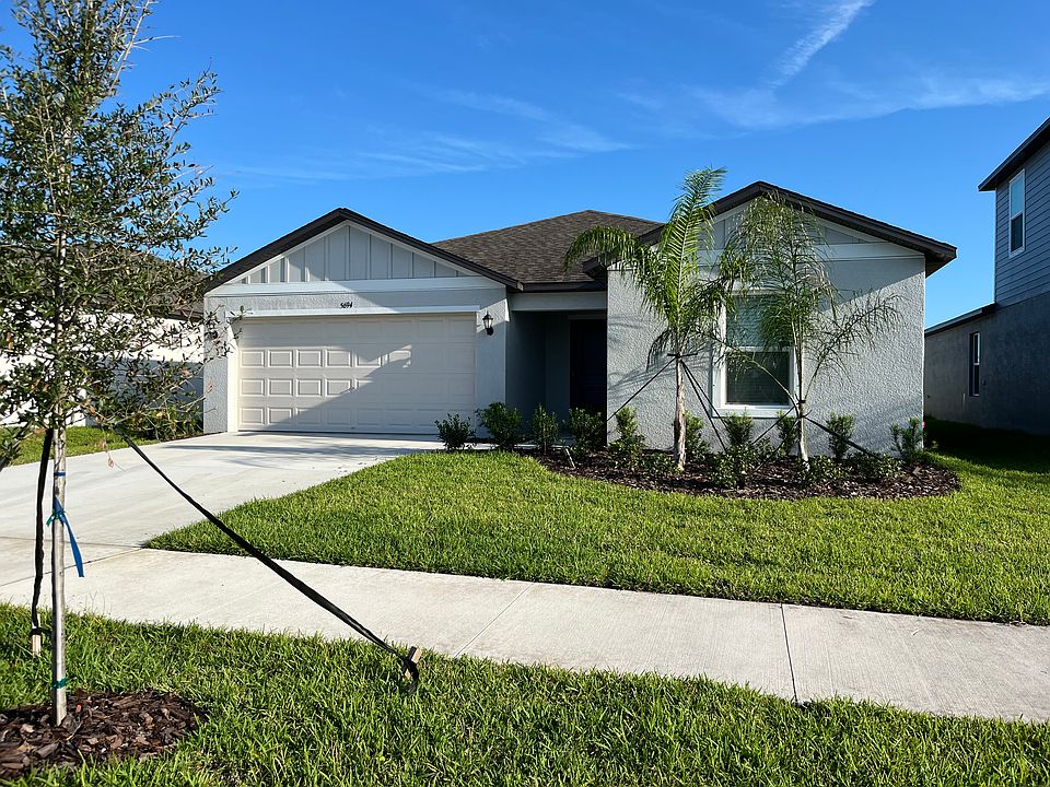 Brand new single-story home shares an open layout between the kitchen, dining area and family room for easy entertaining. A luxe owner's suite is in the rear of the home and comes complete with an en-suite bathroom and walk-in closet. There are three secondary bedrooms at the front of the home, ideal for overnight guests or residents needing additional privacy, as well as a flex space that can transform to meet the household's needs.