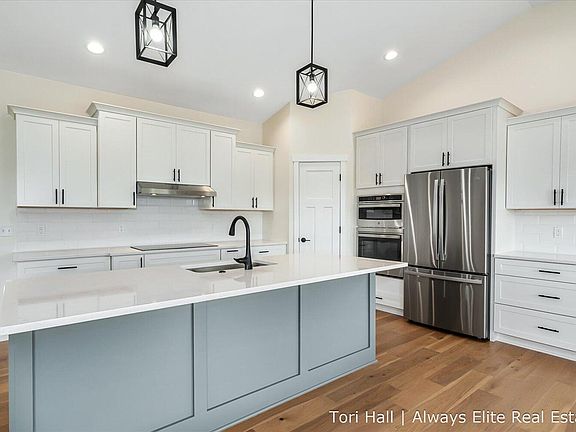 Stunning new construction by WMCI Builders in Woodside Hills. This completed 5-bedroom, 3-bath ranch on nearly an acre offers ~3,200 ft² of elevated living space with 9ft ceilings throughout. The open layout features a chef's kitchen with custom cabinetry, quartz counters, and a statement island that flows into a spacious great room with fireplace and dining area. The main level includes a luxurious primary suite with tray ceiling, spa-inspired ensuite, and walk-in closet, plus two additional bedrooms and full bath. The finished lower level adds two bedrooms, a full bath, and expansive living room. Step outside to the composite covered deck and enjoy peaceful views. A sophisticated blend of craftsmanship, comfort, and style.
