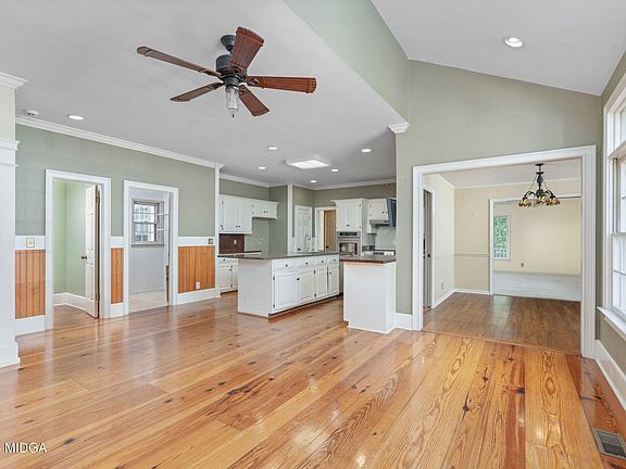 This spacious 4,409 square foot North Macon home on 4.04 acres offers not only the room but also the peaceful retreat close to everything! Located off Bass Road in the Sweetbriar Trail subdivision and just a couple of minutes from I-75, this well loved & maintained home is in an ideal location! This private estate boasts 4 bedrooms on the main level and 2 bedrooms upstairs with storage and additional rooms at every turn, there is space for everyone whether it is extended family or guests! The master suite is located on the main level and offers a beautiful adjoining office/flex space with pine paneling, oak floors and a skylight. So many details to love throughout the home such as: Heart of Pine hardwood floors downstairs, granite countertops, 9 ft ceilings, vaulted ceiling in living room, 2 fireplaces, a safe room with fireproof door, an interior tool room, and the MOST BEAUTIFUL sunroom you ever did see! The sunroom is lined with Andersen made windows. The exterior of the home offers a rocking chair front porch, large brick patios, and a completely wired 10 x 16 workshop with storage for a boat, atv or any lawn equipment. There is a fully electric 12 x 18 barn with an attached horse enclosure located behind the house along with a secure dog enclosure. Both are equipped with running water and ready for your animals to enjoy! With a deep front yard and backyard leading down to a creek, this home is tucked back off of the road and away from the hustle and bustle of life providing that much needed escape! Schedule your showing today of this Macon homestead!