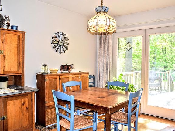 Welcome to country living! This 3 bedroom, 1.5 bath home rests on a corner lot with an attached garage, additional storage shed, and a fenced in backyard. Tucked into the trees, the setting of this property gives its homeowners a sense of privacy and plenty of space to play. On the upper level there are 2 bedrooms, each equipped with bonus rooms, great for extra storage. Enjoy meals in the dining area or on the deck overlooking the backyard. Additional features include main floor laundry and master, partially finished basement, and an eat-in kitchen. Schedule your private showing today!