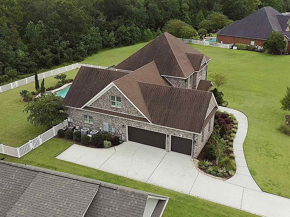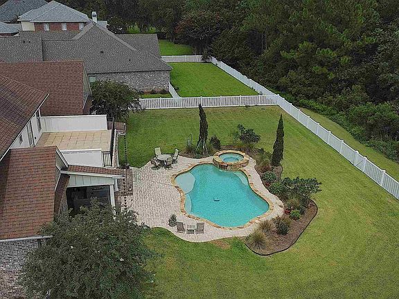 Nestled on an oversized lot in the gated Highlands section of The Moors, this elegant home offers unrivaled privacy and serenity. Boarded by a lush green space and spanning approximately 4,719 sqft, the thoughtfully designed layout combines comfort and style. The home features 6 bedrooms, 5 with walk-in closets, and 4 1/2 bathrooms, a dedicated office space, along with 2 versatile bonus rooms ideal for hobbies, media, or a private gym. The foyer welcomes you with soaring ceilings and a grand staircase. The open and airy atmosphere is enhanced by ten-foot ceilings on the first level. Through the foyer you are greeted by distinct yet open spaces that flow seamlessly by design. A room adjacent to the foyer is perfect for media or a private office. The expansive family room has an oversized fireplace and built-in bookcases, creating a warm gathering space. The gourmet kitchen features bar seating and flows seamlessly into the dining area — perfect for entertaining. The primary suite is a retreat, complete with built-in cabinetry and an electric fireplace. The spa-like bathroom includes a walk-in shower, soaking tub, double vanity, and two walk-in closets. On the first floor, you'll also find a guest bedroom with an attached bath, a spacious laundry room, and a second staircase. Upstairs there are 4 bedrooms, 2 baths, a dedicated office space with built-in desk and hutch, a bonus room, and a sun deck overlooking the backyard —ideal for relaxation. The backyard is an entertainer’s dream: a covered lanai with an outdoor kitchen, ample spade for al fresco dining, and a paver patio leading to a heated sparkling quartz gunite pool with an attached spa. Professionally landscaped gardens and flagstone edging complete this outdoor paradise. Additional features include a Sonos sound system, oversized 3-car garage, irrigation well, security system, impact windows, underground propane tank, 2 gas lanterns, and proximity to The Moors Fitness Center and Clubhouse — just minutes away.
