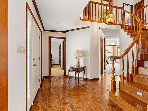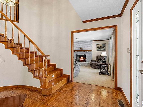 Lakefront Living at Its Finest in Lakewood! Welcome to your dreamy lakefront retreat on a 28-acre stocked lake—perfect for fishing, swimming, and jet skiing all season long! This stunning 4–5 bedroom home (with a bonus room) features a main-level bedroom with an ensuite for added flexibility and convenience. Step into a grand foyer with soaring ceilings and a curved wood staircase—truly a showstopper for life's special moments. The open living and dining areas showcase built-in shelving and a brick gas log fireplace, making it the ideal space for both relaxing and entertaining. The gourmet kitchen, designed by Newman, is a cook’s dream with solid surface counters, cherry cabinetry, a pantry, breakfast nook, and elegant marble flooring. The cozy family room looks out over a spacious deck with beautiful lake views. Upstairs, the primary suite feels like a retreat with a luxurious ensuite featuring double sinks, a jet tub, separate shower, and a walk-in closet. The bonus room (with built-ins) has a stairway to the garage and is also accessible through Bedroom 3—perfect for a media room, home office, or playroom. Throughout the home you’ll notice solid six-panel doors, detailed trim work, and updated lighting highlighting the quality craftsmanship. Recent mechanical upgrades include zoned HVAC systems with air purifiers and a new 80-gallon hot water heater. Outdoor living is a dream too with a covered front porch, an open deck, and a small fenced area—all overlooking the sparkling lake. Great room recently updated with luxury vinyl plank flooring and ceramic tile; laundry, and master bath also updated with luxury vinyl plank flooring.