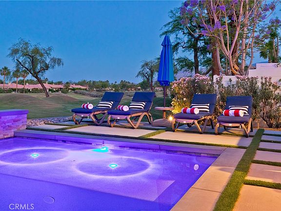 Nestled on the 8th fairway of the famous Jack Nicklaus Private Course of PGA West is our newly remodeled Casa Havana, a stunning 3,000 sq. ft. Contemporary Estate perfect for entertainment and relaxation. The professionally designed Casa Havana features 4 bedrooms, 5 bathrooms (each with a private en suite), a brand new pool and spa with 3 unique waterfalls, and a fire pit. The pool includes a tanning shelf with colored bubblers for all ages. Enjoy sunset dinners with the built-in stainless steel BBQ and sink. A full 3-hole putting green stretches across the property. With custom white-washed Brazilian wood floors and Spanish-style exterior ceiling fans, this home stands out in the enclave of 75 golf course homes within PGA West. Stainless steel appliances, en suite bathrooms, and 65'' flat-paneled high-definition TVs with Netflix complete the upgrades. Relax on the extensive patio with a custom-built mister system and enjoy wireless internet coverage throughout the property. The 20-foot vaulted ceilings in the living room add to the memorable experience.