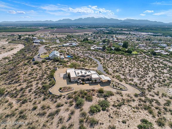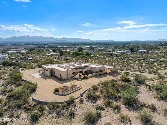 Life is great on Good News Way! At the top of the hill, the views are AMAZING! A vibrant panorama showcasing the Organ Mtns, Picacho Peak, Robledo Mtns and the Dona Ana Mtns, is constantly evolving. Sunrises, sunsets and New Mexico night skies are SENSATIONAL, like artistry in motion. Perched on over FOUR acres, this wonderful southwestern home offers up BIG value! A cozy courtyard entry welcomes you! A relaxing primary suite makes you happy. The elegant kitchen sparkles with beautiful granite countertops and pendant lighting. Spacious rooms throughout are practical and flexible. Outdoor living is superb on the large, covered porch. The three-car garage with additional double carport is insane! A complete circle driveway makes it easy for large vehicles and toys to maneuver. A VIEW from every angle is PRICELESS! Pride of ownership shines! Make it your place, today.