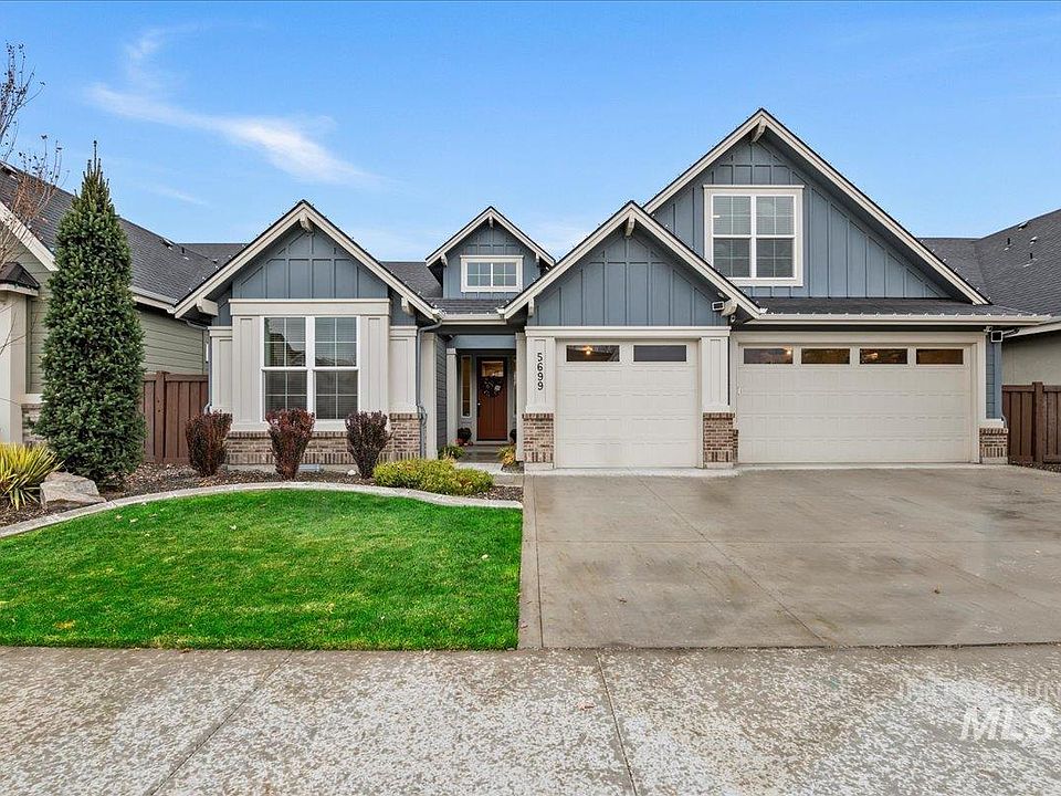 This spectacular, move-in-ready home in the highly sought-after Bainbridge Subdivision truly has it all! Featuring 3 bedrooms on the main level plus a spacious bedroom/bonus room with a full bath upstairs, this versatile layout offers the perfect blend of comfort and functionality for any lifestyle. Step inside to a welcoming entryway accented by beautiful, like-new hardwood floors that flow seamlessly into the open great room with elegant coffered ceilings, a stunning floor-to-ceiling stone fireplace, and custom built-in shelving. The chef’s kitchen is a dream with ample space, complete with a large island, quartz countertops, gas range, walk-in pantry with plugs, and a sleek seamless refrigerator that stays with the home. A generous dining area opens to a covered patio and professionally landscaped backyard, perfect for entertaining or relaxing in your own private retreat. The 3 car garage provides that extra space you need for all the extras as well! Located in one of Meridian’s most desirable communities, Bainbridge offers peaceful, tree-lined streets, two community pools, and numerous common areas to enjoy.