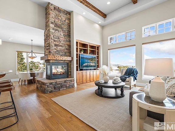 Experience exceptional single-level living in the prestigious ArrowCreek Golf & Country Club. This sought-after "Muirfield Villa" provides an open floor plan with soaring ceilings, expansive picture windows showcasing stunning city views. Upgrades include elegant white oak floors, solid knotty alder doors, beams, a stone fireplace, fresh paint, & gourmet appliances. Enjoy a private cul-de-sac location backing to a community park, complete with a romantic firepit for unforgettable evenings., Residents of ArrowCreek enjoy access to a host of amenities at the ArrowCreek Residents’ Center, including a community pool complex, tennis and pickleball courts, a basketball court, a fitness center, playgrounds, BBQ areas, an open lawn with a surrounding par course, and miles of walking trails. The Club at ArrowCreek recently underwent a remarkable $70 million expansion, offering 36 holes of championship golf, elevated dining experiences, pool amenities, a state-of-the-art fitness center, a driving range, putting greens, chipping areas, bocce ball courts, special event spaces, and a variety of clubhouse activities. While this sale does not include a membership, potential buyers can inquire with ArrowCreek’s Membership Director for membership options and availability. ArrowCreek is a private, gated golf course community with 24-hour manned security. Conveniently located just 20 minutes from Reno-Tahoe International Airport and Mt. Rose Ski Resort, and a scenic 35-minute drive to the stunning shores of Lake Tahoe.