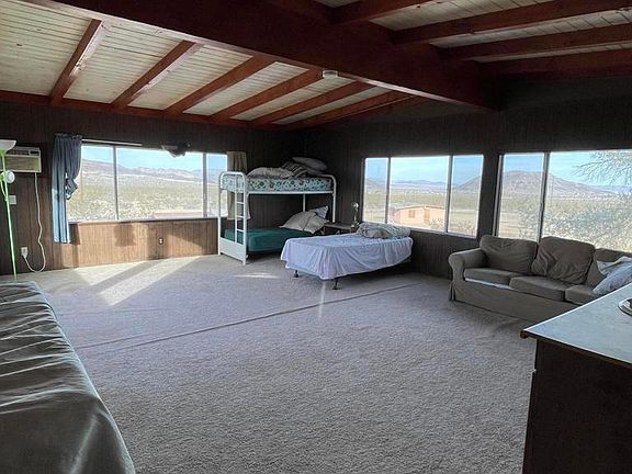 Nestled amidst the awe inspiring Giant Rock, the enchanting Integratron, you can see the majestic Big Bear ridge from your back yard, this sprawling desert gem offers breathtaking panoramic views that will captivate your senses. Situated on a generous 2.5-acre lot, this well-appointed zen compound boasts a spacious 1 bedroom, 1 bath, 1686 square foot home, tucked away in desert paradise. The property is bordered by pristine San Bernardino land, ensuring perpetual tranquility and unspoiled natural beauty. Immerse yourself in the mesmerising sunsets and gaze upon a star-studded night sky that only the stunning Mojave desert can provide. Whether you seek a serene getaway or a lucrative income property, this home is a blank canvas with endless possibilities. With its solid foundation and remarkable potential, you can customize this residence to your heart's desire. Expand the living space, transform the expansive stand-alone garage into an artist's studio or a second dwelling, not to mention the possibility of remodelling the cool trailer at the rear of the home and create your own oasis with ample room for a pool. Despite its secluded nature, this location offers unparalleled convenience and accessibility to Joshua Tree, Pioneertown, and a myriad of other attractions. Don't miss the opportunity to own this private sanctuary in the heart of the desert.