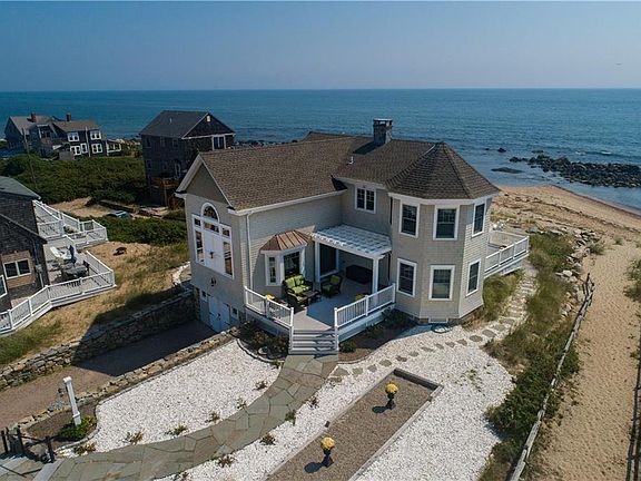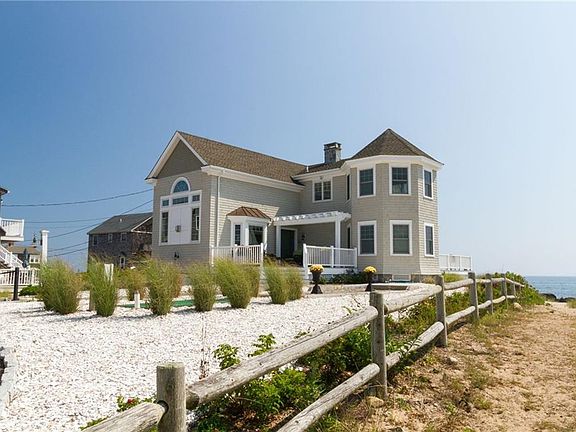 Stunning oceanfront home in QUONOCHONTAUG West Beach . Live in paradise on the beach of the Atlantic Ocean on a FEMA designated X-zone property on nearly one half acre of magnificence. NO FLOOD INSURANCE REQUIRED! You will enamored upon entry with the casual coastal ambiance. Offering three bedrooms and three and one baths with a beautiful open floor plan along with two fireplaces and a charming kitchen plus a gorgeous family room. Architecturally designed to capture beautiful vistas of Block Island and beyond. There is an abundance of outdoor living to enjoy this piece of heaven.. It simply doesn't get any better than this. The outdoor living is exceptional and offers lovely views of Block Island, Montauk and beyond. Walk out you door and enjoy the beauty of the ocean. Beautifully renovated, inside and out, this home is a seaside treasure and is one of the few oceanfront homes in Quonnie. West Beach is a 14 home enclave in Quonnie. Walk out your door and enjoy your own beachfront. Quonnie Pond is just a short stroll away for to enjoy paddle boarding, kayaking, fishing and clamming.