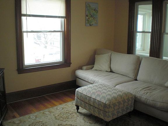 Pet: Negotiable DELEADED. Newly renovated, new kit with stainless & granite. Back porch, shared back yard. 2 tandem parking spaces one of which is a garage. New windows. Laundry in unit. Basement storage. Lots of character with high ceilings and period moldings. Open floor plan with a bar and wine fridge. Also, includes a front foyer/porch room. 4 bedroom with living room and dining room. Skylights, close to bus stop every 5 minutes, great/convenient neighborhood 15 minutes from Harvard Square. Lots of sunlight