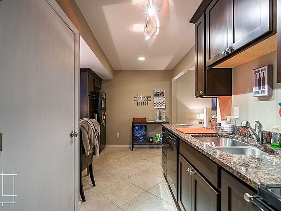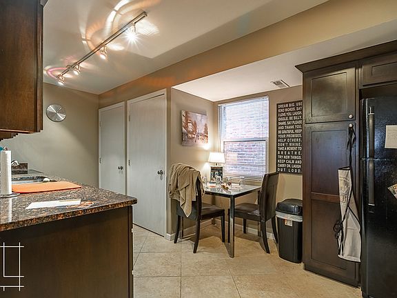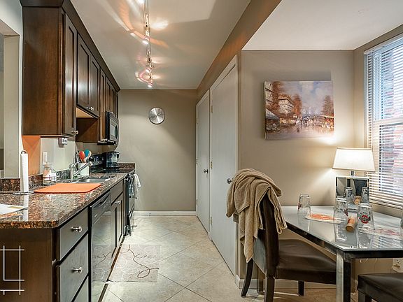 Custom-fitted granite wrap-around countertopStainless steel appliancesOff street parkingDark hardwood floors
