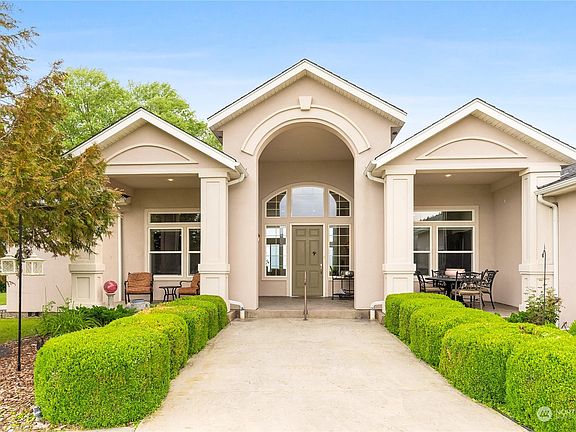 Welcome to this magnificent California-style home in Tonasket. With curved arches, crown molding, & an exquisite design, this property exudes elegance. Step into the foyer & be greeted by cathedral ceilings & natural light from oversized windows throughout. The primary bedroom boasts an ensuite & walk-in closet. With 5 bedrooms, including an office, and 4 bathrooms, ample space is provided. The oversized living room with a fireplace is perfect for relaxation and entertaining. Formal and informal dining areas cater to all occasions. The modern kitchen features a large island and abundant counter space. High ceilings create an airy atmosphere. Outside, nearly 10 acres of landscaped grounds with a sprinkler system offer unparalleled serenity.