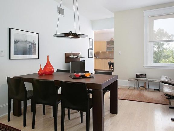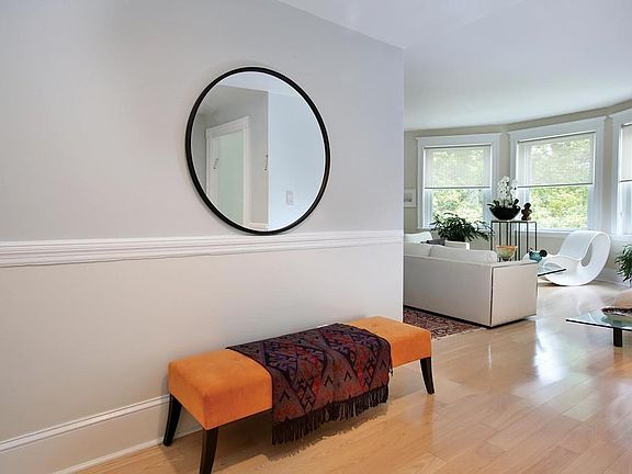 Set in a lovely row house on Aspinwall Hill, this gracious condominium has an open-concept floor plan with light-filled spaces, high ceilings, and treetop views. Highlights include a large living/dining room with a bay window, a renovated eat-in kitchen appointed with granite countertops and stainless steel appliances, and three bedrooms. Also offered are central air-conditioning, hardwood flooring, two full updated bathrooms, an in-unit washer/dryer, ample basement storage, and separate systems with individual control. There is parking for one car. This property is convenient to Schick Park, Green Line C & D train stations, Brookline High School, and Washington Square shops and restaurants.