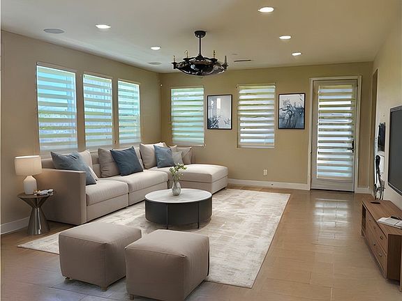 Former model home at Reverie at Esencia in RWV. 4 bedrooms with 3.5 Bath with huge office room looking to the community park. Sliding doors lead to covered loggia patio with the view overlooking playground. The house has been upgraded throughout with upgraded tile, recessed lights throughout. 3-car attached garage.