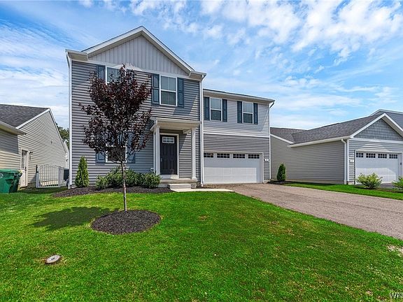 Welcome to 57 Allie lane located in Hamburg, NY! Move right into this like-new 3 bedroom, 2.5 bathroom home built in 2020. Beautiful kitchen with White shaker cabinets, granite counters with breakfast bar, & stainless-steel appliances. Open concept floor plan with dining room & living room and half bathroom rounding out the 1st floor. Upstairs you will find a spacious primary bedroom with ensuite and walk-in closet. Two additional bedrooms with ample closet space, another full bathroom and enjoy the convenience of the 2nd floor laundry. Some additional fantastic features are Central AC, On Demand HWT and 2 car attached garage. Clean, dry basement with egress window is perfect for hobby area or creating additional living space. Partially fenced yard great for entertaining. Offers will be reviewed on 7/27. Truly nothing to do but unpack and enjoy. Schedule your private showing today!