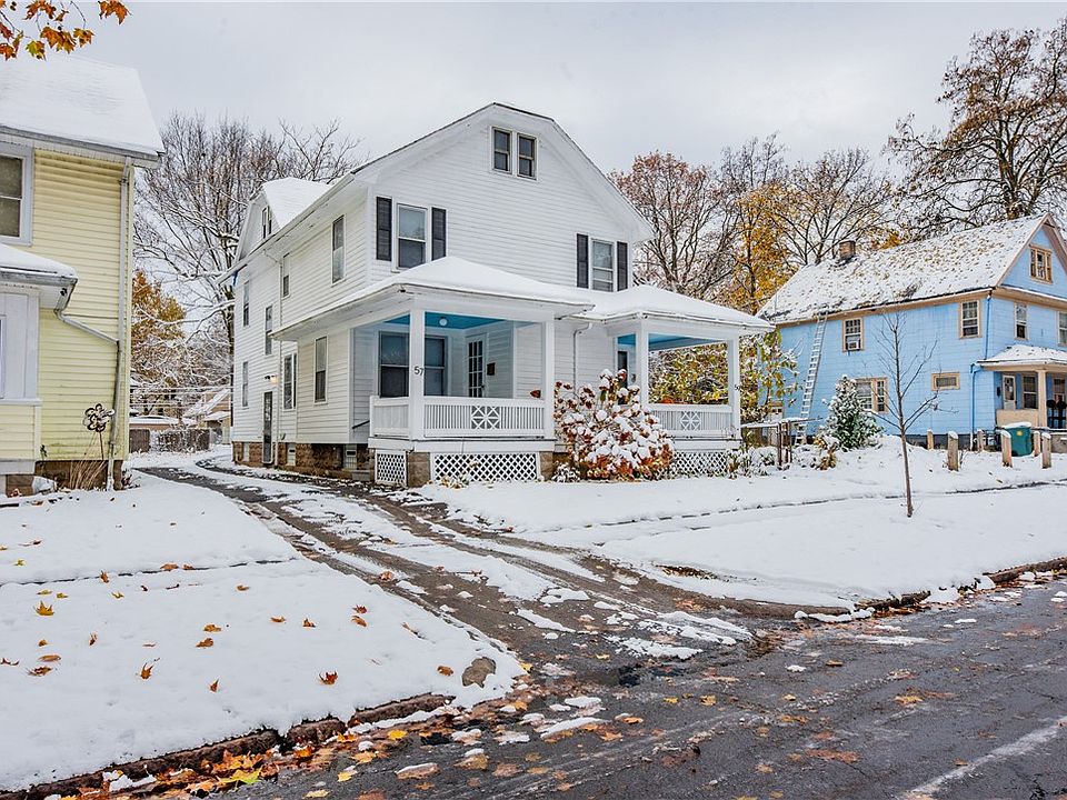 Available November 15th. Two-story apartment with 2 bedrooms and 1 full bath. Unit includes a private entrance, front porch, and two off-street parking spaces. Interior features recently refinished hardwood floors and natural woodwork. Kitchen includes refrigerator, stove, and new cabinets. Private basement recently dry-locked with a washer and dryer provided. High-efficiency furnace. Fresh interior and exterior paint. Tenant is responsible for gas, electric, internet, cable, and snow removal. Landlord provides water, lawn maintenance, and trash removal. No pets. One-year or longer lease preferred.